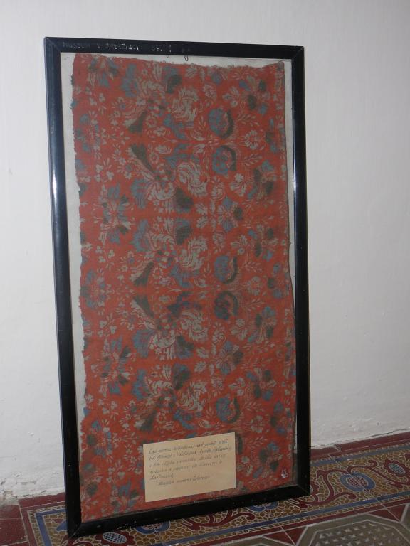 Tento fragment látky pravděpodobně pochází ze závěsu (baldachýnu), který byl umístěn nad postelí v komnatě, kde byl vojevůdce Albrecht Václav Eusebius z Valdštejna dne 25. února 1634 v Chebu zavražděn.