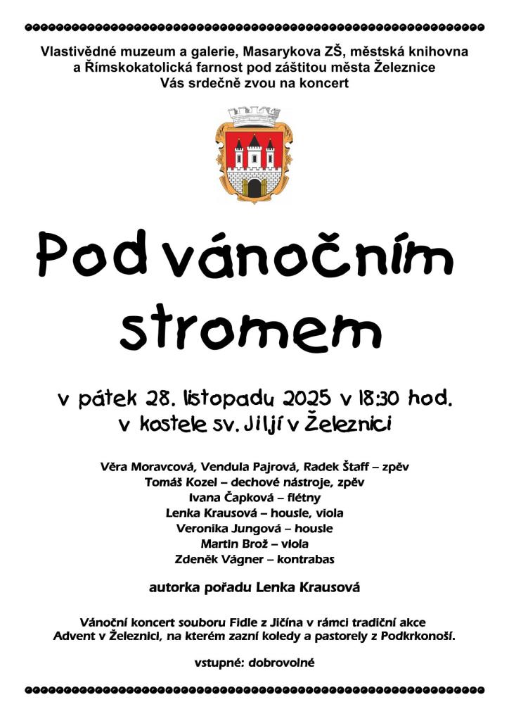 V podvečer adventní, kdy město zahalí jemný třpyt světýlek, sejdeme se v 18:00 hodin na náměstí v Železnici u slavnostně ozdobeného stromečku.