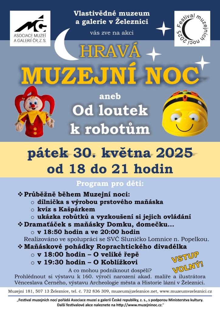 MUZEJNÍ NOC 30.5.2025 od 18:00 do 21:00 hodin - Hravá Muzejní noc aneb Od loutek k robotům